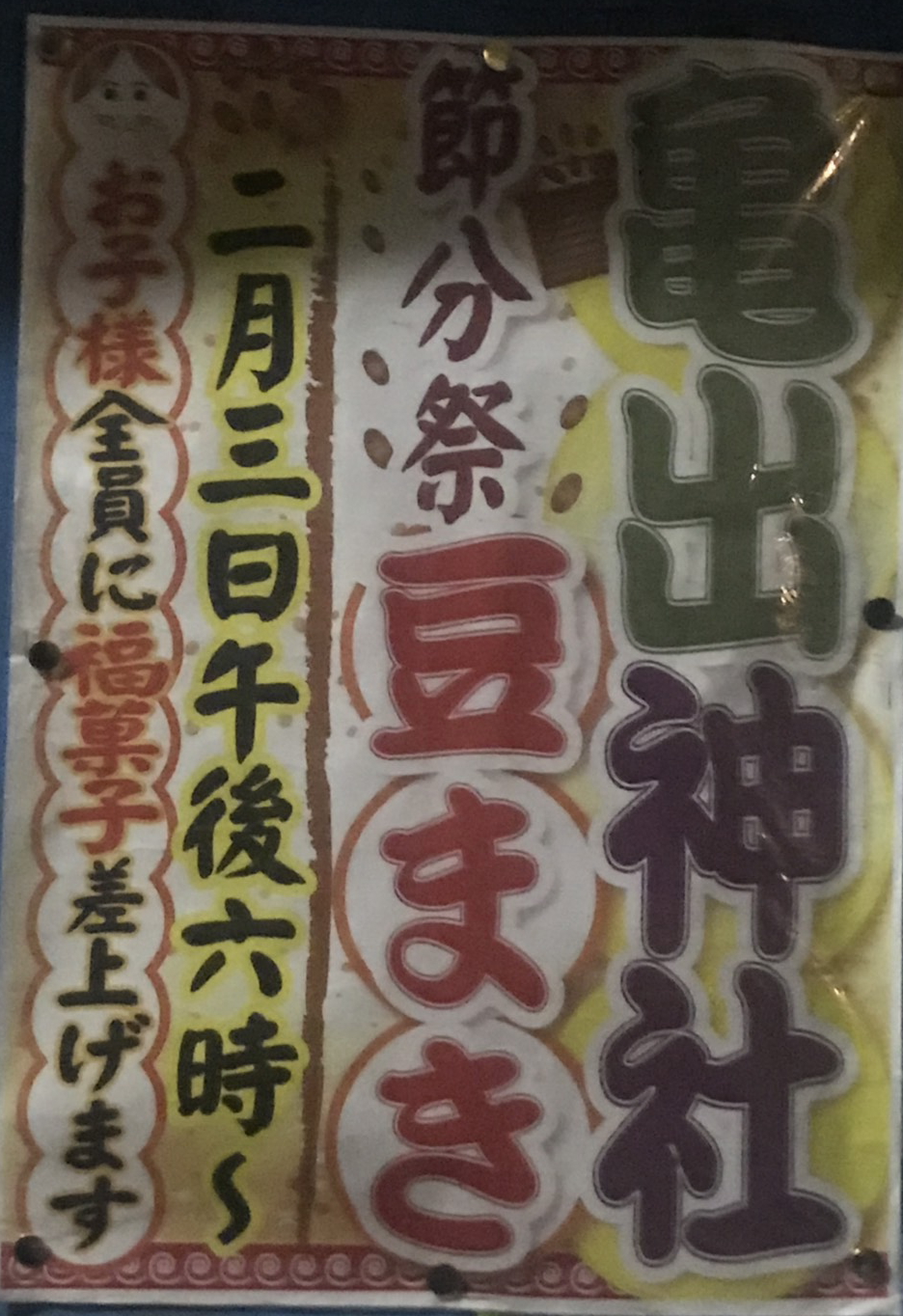 イベント 【終了】2020年2月3日(月)18:00~ 節分祭 亀出神社 亀出神社 江東区大島3-31-15 https://tesshow.jp/koto/shrine_oshima_kameide.html... 2020年1月28日