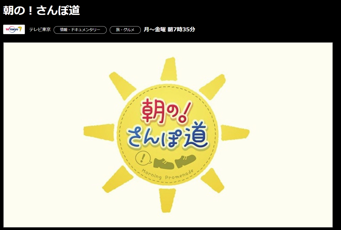 メディア テレビ放送 2019年2月19日(火)朝の!さんぽ道 江東区・大島 朝の!さんぽ道に出るようです。 https://www.tv-tokyo.co.jp/broad_tvtokyo/program/detail/201902/24042_201902190735.h…... 2019年2月18日