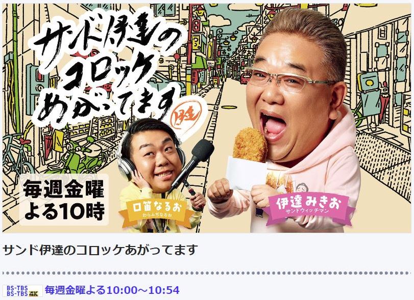 メディア テレビ放送 2024年5月17日(金) 「サンド伊達のコロッケあがってます」 #4 東京都江東区 大島中の橋商店街 サンドウィッチマン伊達が、大大大好きなコロッケを食べ歩く企画。 お供は、後輩芸人「わらふぢなるお」の口笛なるお。 伊達の食べるコロッケのおいしそうな音を拾う音声さんとしてもサポートします! 番組ホームページ:https://b…... 2024年5月16日