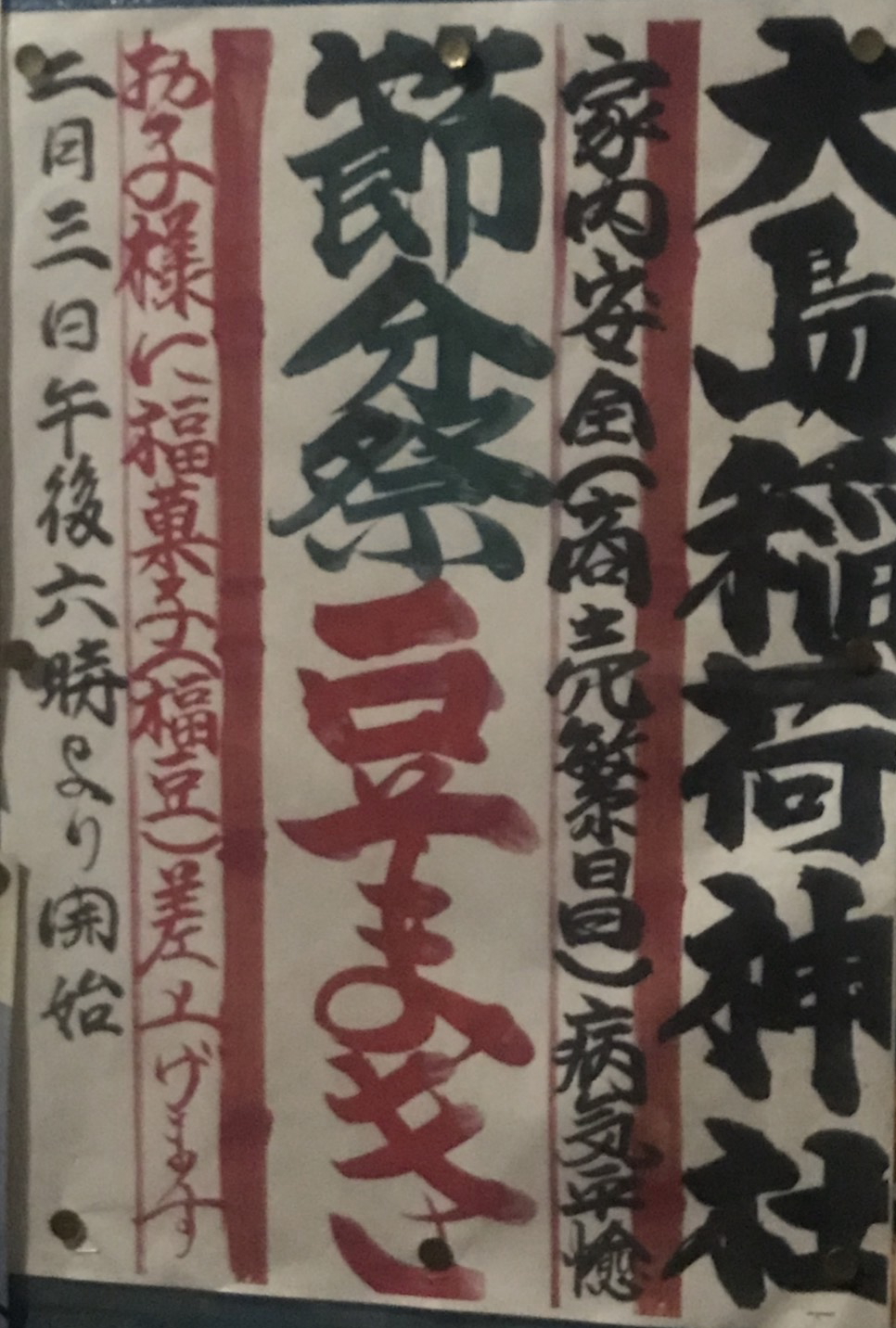 イベント 【終了】2020年2月3日(月)18:00~ 節分祭 大島稲荷神社 大島稲荷神社 東京都江東区大島5丁目39−26 https://tesshow.jp/koto/shrine_oshima_inari.html... 2020年1月28日